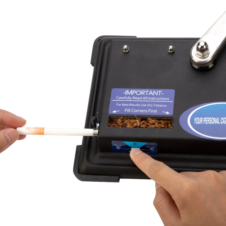 6. Hold the machine firmly with one hand, pull the handle slowly and evenly to the right until it stops, and then return the handle to the original position. Your cigarette is made.