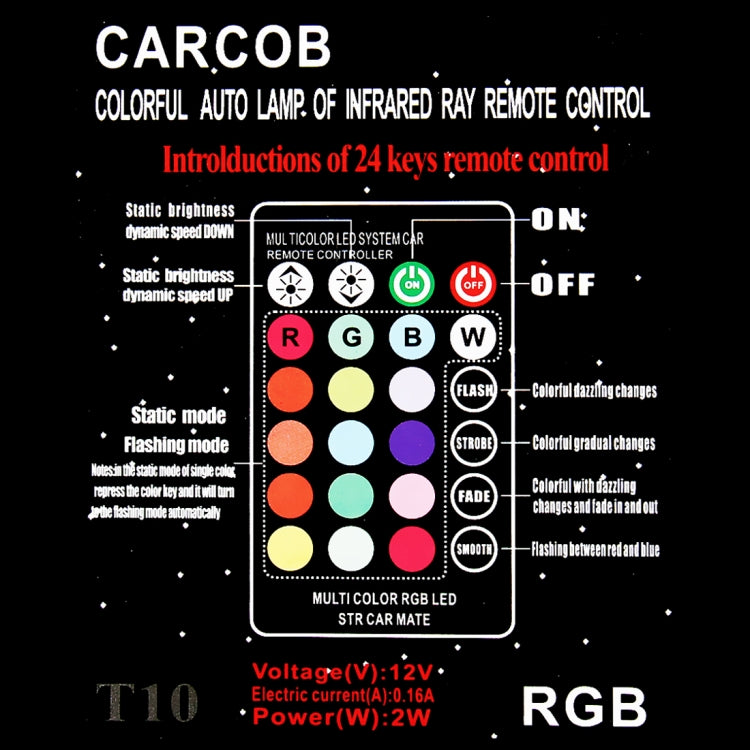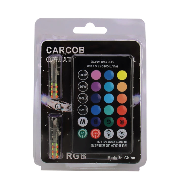 2 PCS W5W 194 T10 Multi Colors COB 12 SMD RGB LED Bulbs with Remote Control Wedge Side Lights License Plate Lamp, DC 12V