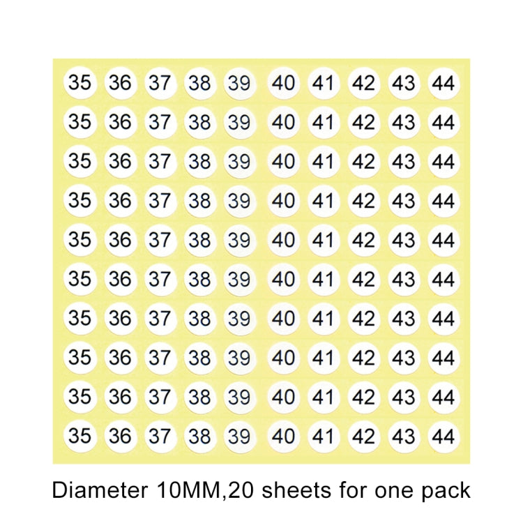 20 PCS Round Shape Number Sticker Shoe Size Label, Number 35-44