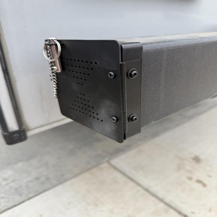 2. The safety pin prevents the cover from opening while the RV is driving, avoiding the drain hose from falling off the bumper. The small vents provide airflow and double as insect screens.