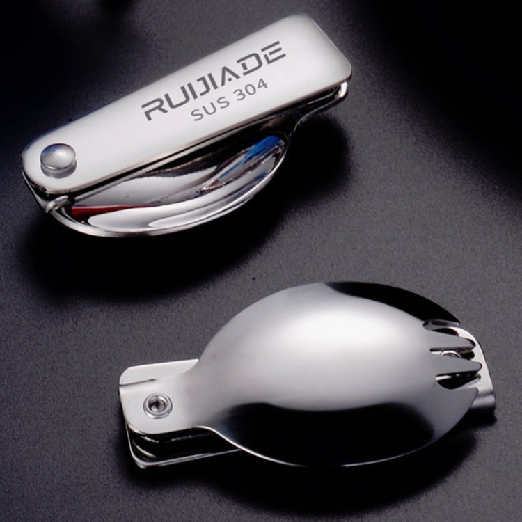 2PCS Stainless Steel Folding Fork Spoon Integrated Dual-use Picnic Portable Tableware, Random Color Delivery
