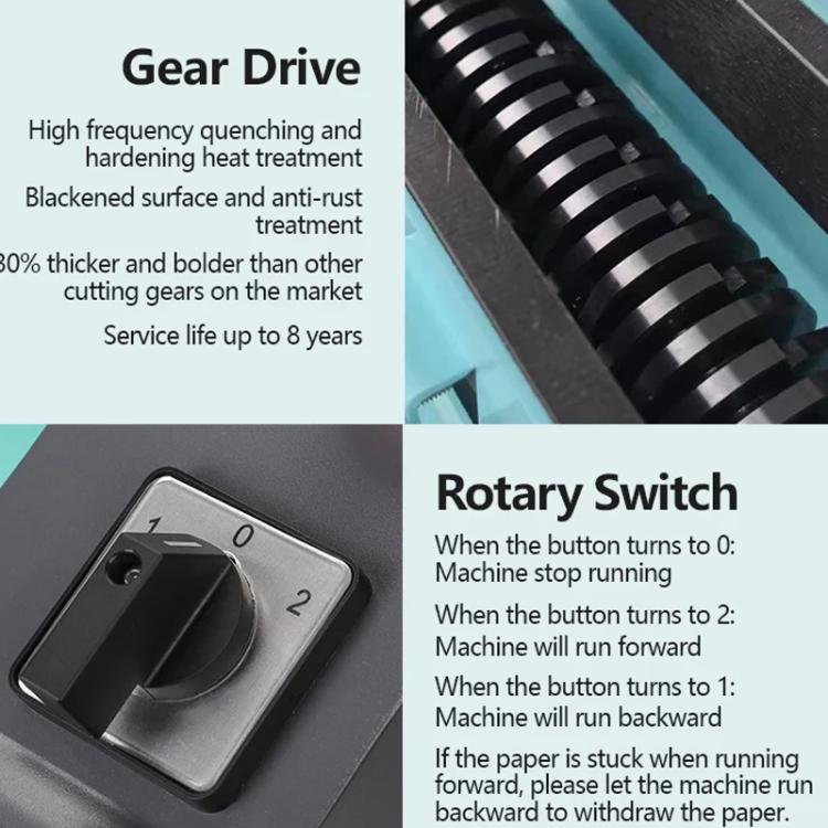 6. Versatile Cutting Capacity: A4 paper, cartons, and cardboard (less than or equal to 10mm thick) can be shredded; the cutting width is 35cm/45cm. Auto-trimming for oversized materials. Handles tape-covered cardboard effortlessly.