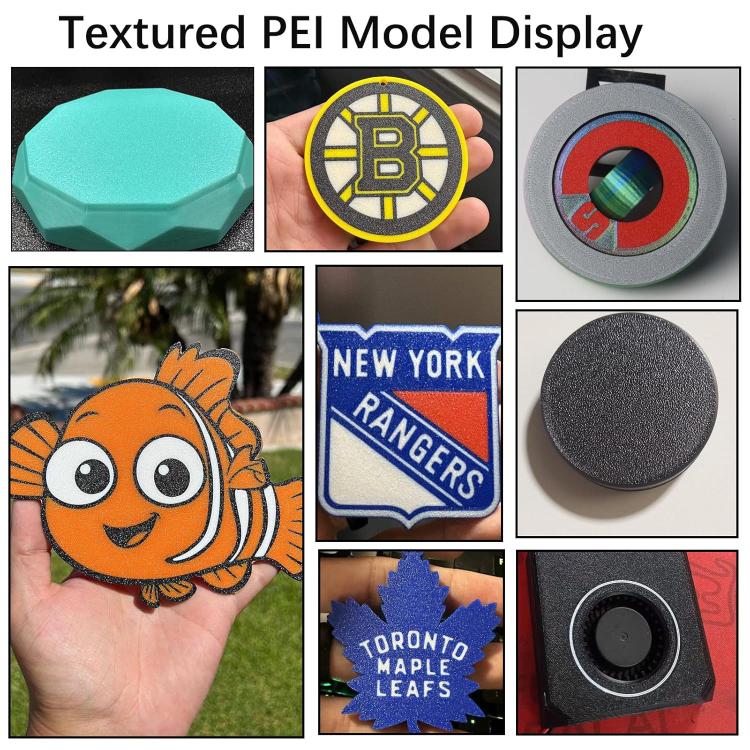 4. Compatible Filaments: The film surface is smooth and easy to clean, and can be well adhered to various consumables. The PEI coating surface has a matte texture and can print materials such as PLA/ABS/PETG/TPU/nylon.