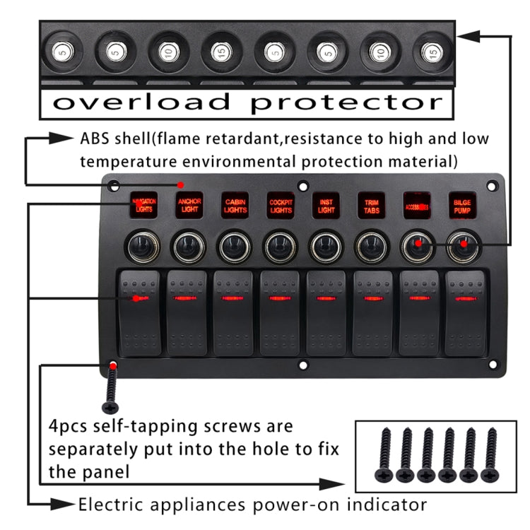 3Pin 8 Way Switches Combination Switch Panel with Light and Projector Lens for Car RV Marine Boat