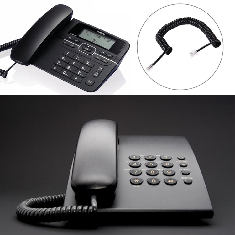 4 Core Male to Male RJ11 Spring Style Telephone Extension Coil Cable Cord Cable, Stretch Length: 2m(Black)