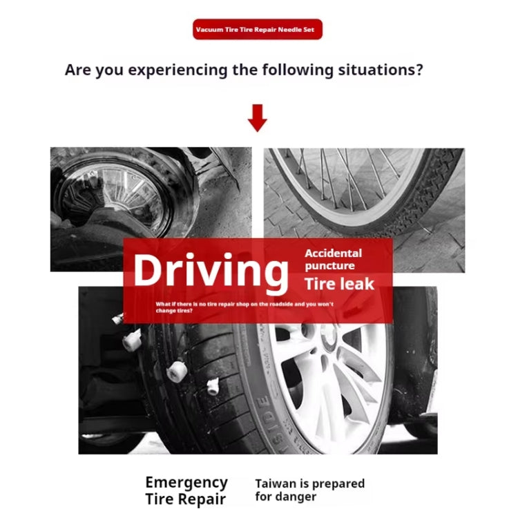 46pcs /Set Car Tubeless Tire Repair Needle Rubber Strip Valve Tip Needle-nosed Pliers Tool Set