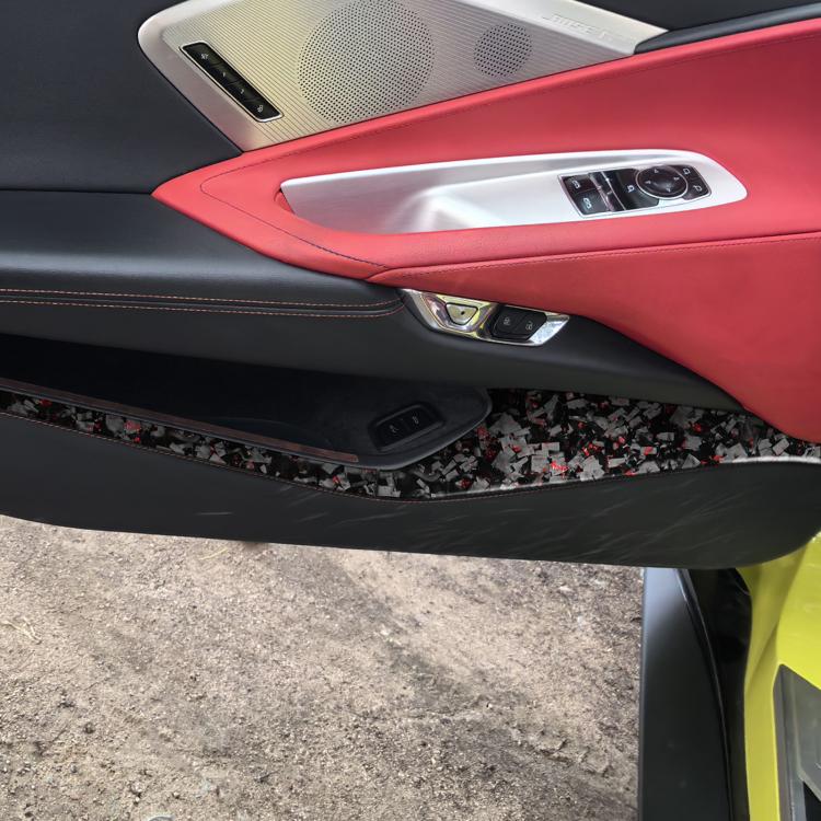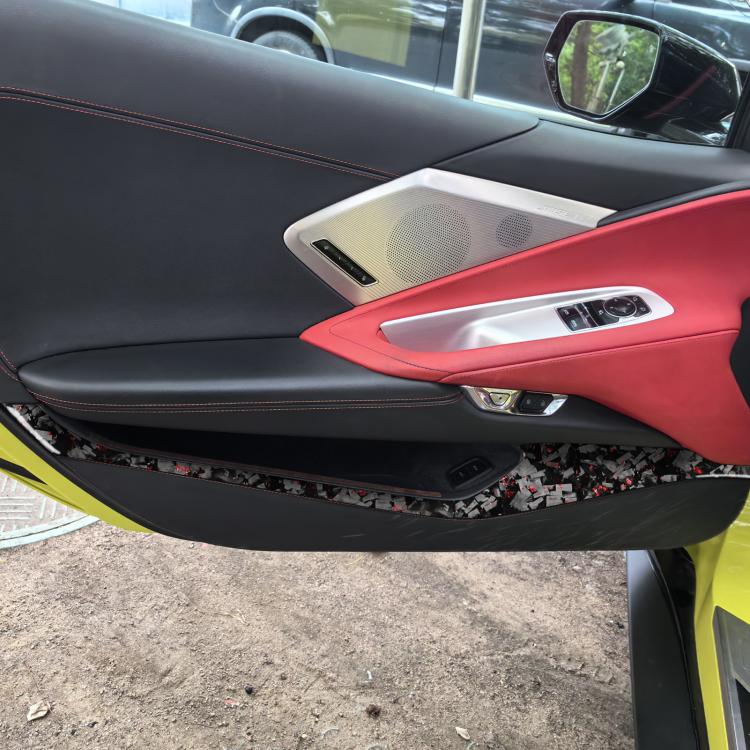 4pcs/Set Forged Gold Foil Carbon Fiber Car Door Storage Panel Decorative Sticker for Chevrolet Corvette C8 2020-, Left and Right Driver