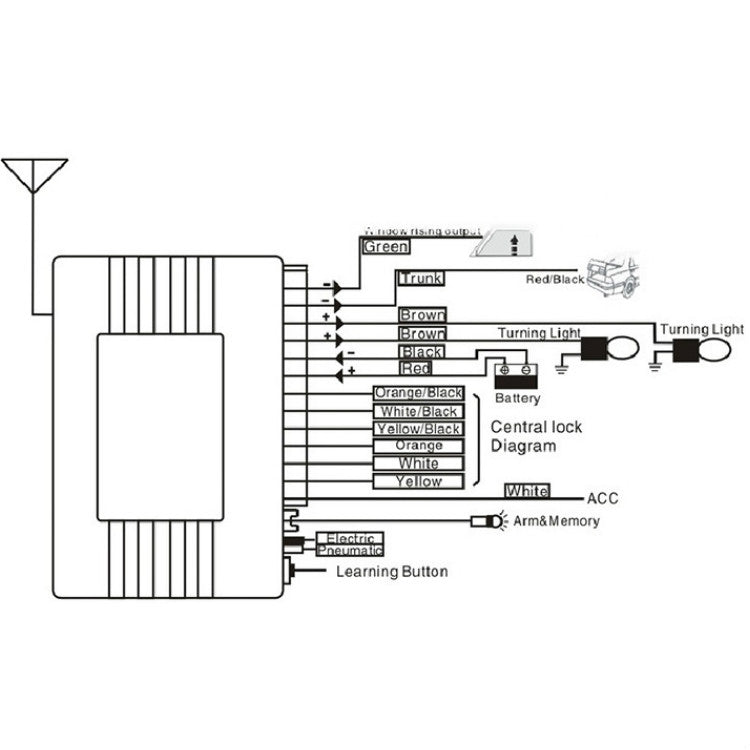 1. Press the remote control lock button once, the door is locked, the direction light flashes once, the horn sounds once, the LED indicator flashes, and the window rise signal output