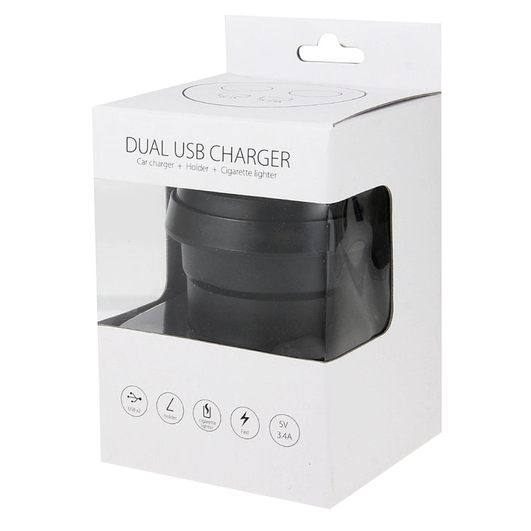 5V 1A+2.4A Two USB Ports & Two Car Cigarette Lighter Socket Car Charger with Holder Function