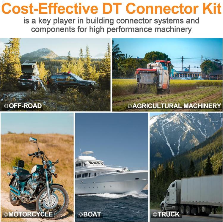 1. This 603-piece DT connector kit provides a comprehensive assortment of Deutsch-style electrical connectors and accessories, designed for professional-grade automotive, marine, and industrial wiring applications.