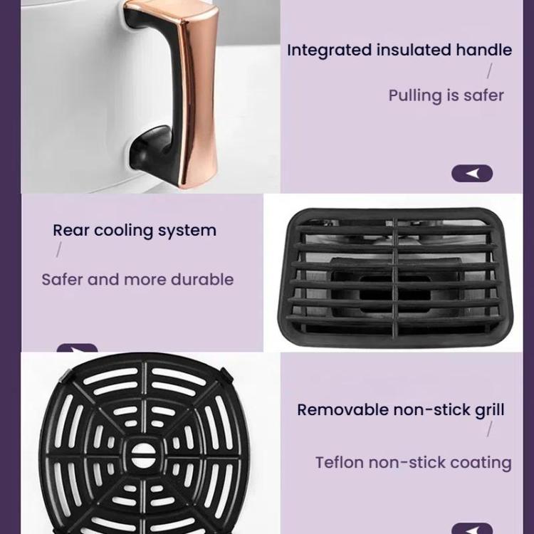 8. Easy to clean, no sticky bottom, non-stick coating, double-layer shell, anti-scalding and heat protection, with baking tray, grill, and grill net