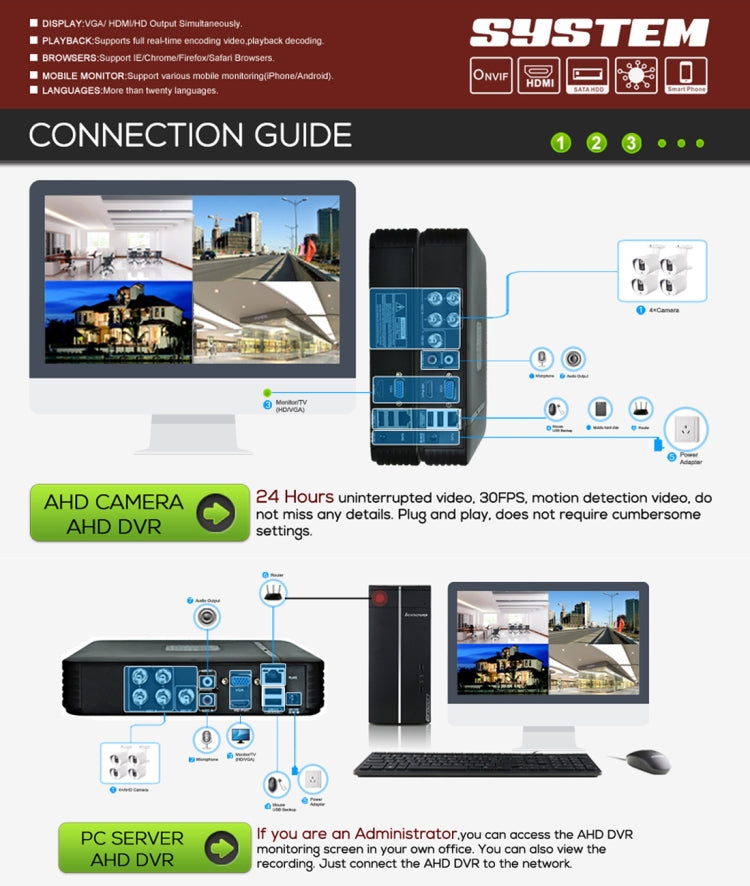 1. Support 4CH 960P/720P 1HDD AHD DVR