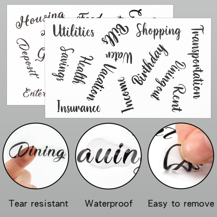 6. Included accessories: zipper bag 8+ double pockets 2+ small floral budget card 12+ ruler 1+ 8 labels 4+ A style English stickers 2