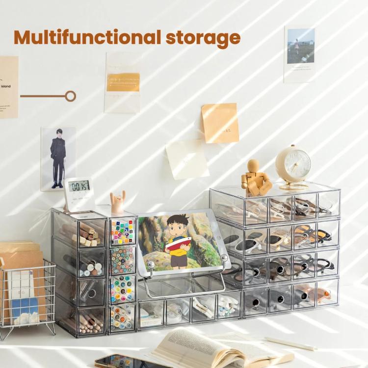 Acrylic Desk Organizer With 4 Drawers Stackable Glasses Display Case Makeup Brush Stationery Storage Box