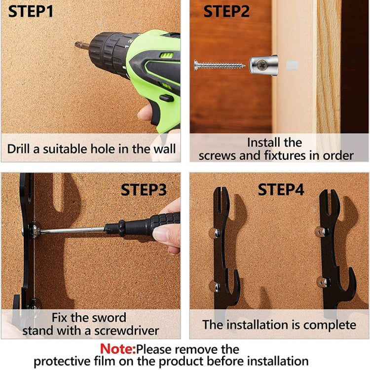 Packing list: 1 pairs of sword racks (2 pieces) + 4 hardware clips + 4 screws + 4 expansion tubes