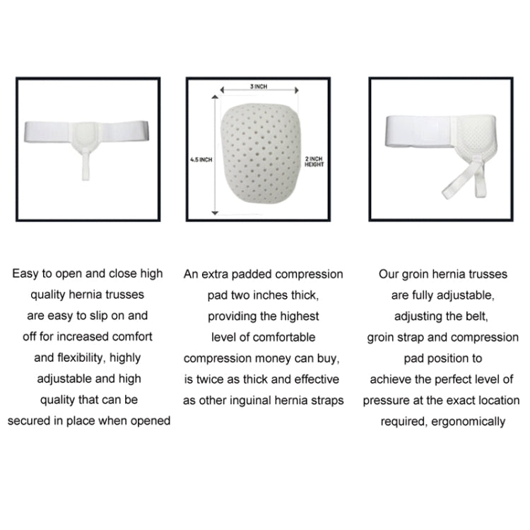 7. Our inguinal hernia truss is fully adjustable, adjust the waist belt, groin strap and compression pad position to achieve the pressure level at the exact position needed, ergonomically