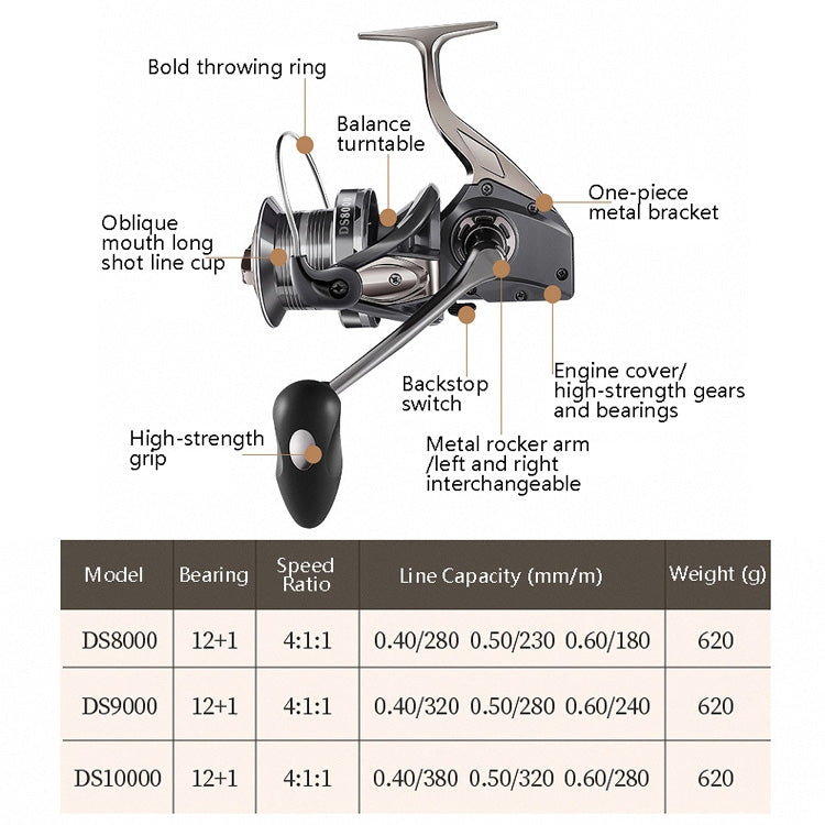 1. Large-capacity oblique line cup, reduce the friction of fishing line, hollow design, realize light weight, line cup cable groove design, guide evenly arranging the line without jamming