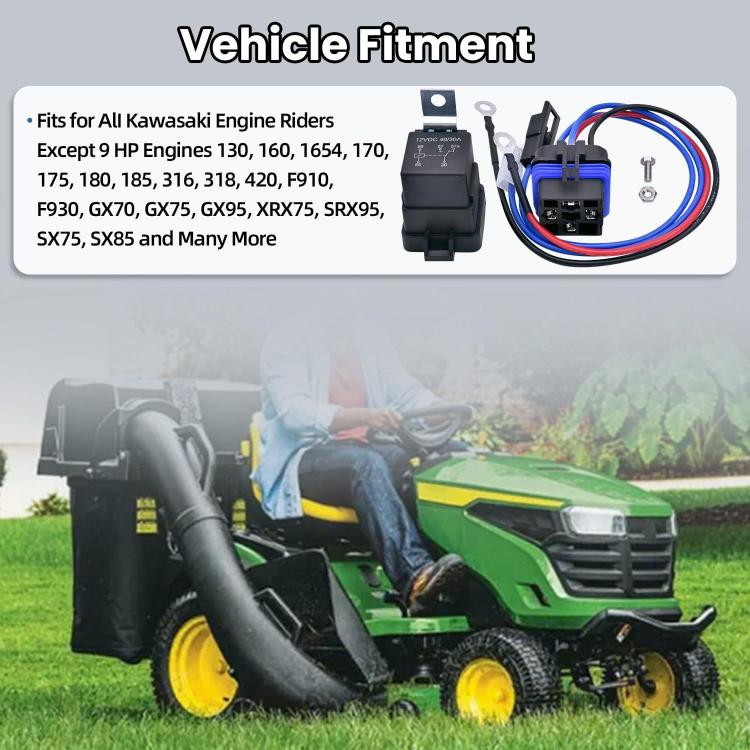 11. Features: the AM107421 Improved Starter Relay Kit is designed to eliminate the voltage between the battery and the starter solenoid, resolving the issue of only hearing a "click" when starting the machine.