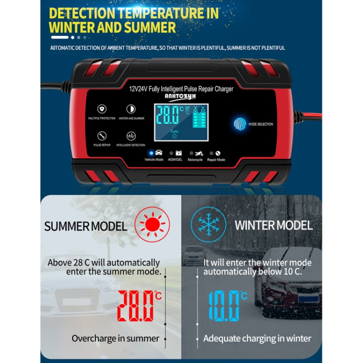 ANHTCzyx 12V 8A / 24V 4A Automobile Battery Charger Motorcycle Battery Repair Type AGM