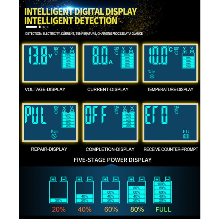 6. Battery type: Most types of lead-acid batteries, including calcium, GEL and AGM, wet, EFB, etc.