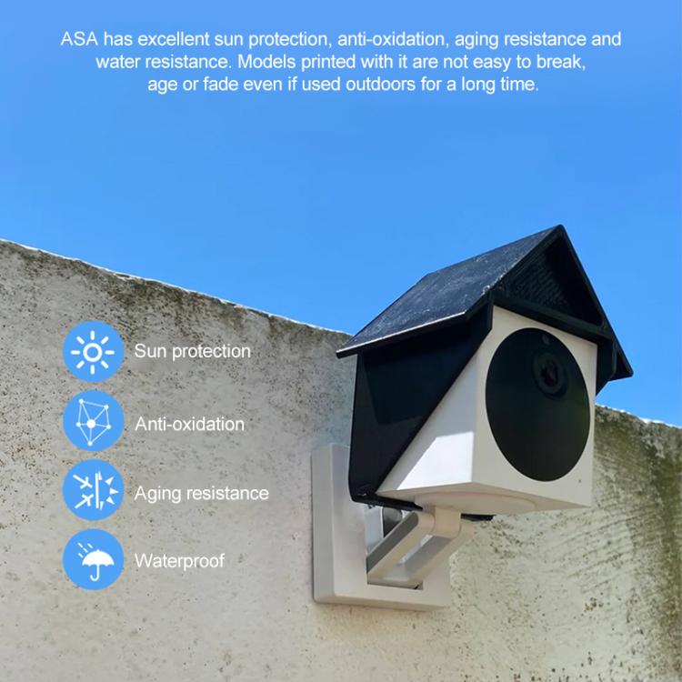 1. Extreme Weather & UV Protection: ASA filament offers weathering and UV resistance thats ten times more potent than standard ABS filaments. It retains its mechanical strength and vibrant color even when exposed to the harshest outdoor elements. This advanced ASA filament is widely used in environments with high exposure to open air, rain, cold, and seawater.