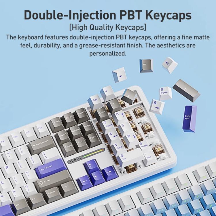 AULA F108 108 Keys Wired/2.4G/Bluetooth Three Model Customizable RGB Gaming Mechanical Keyboard