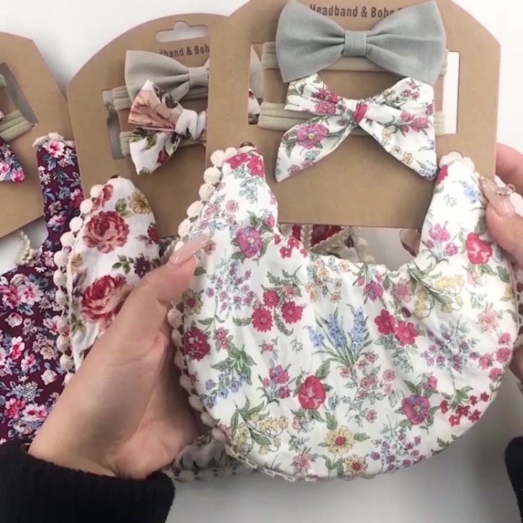 Baby Linen Cotton Printed Double-sided Saliva Towel Headband Set