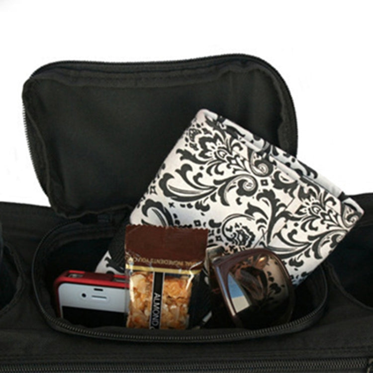 2. The tray-type bag hanging on the back of the stroller can hold 2 cups or bottles, which is easy to take, and there is a zipper-type storage bag in the middle