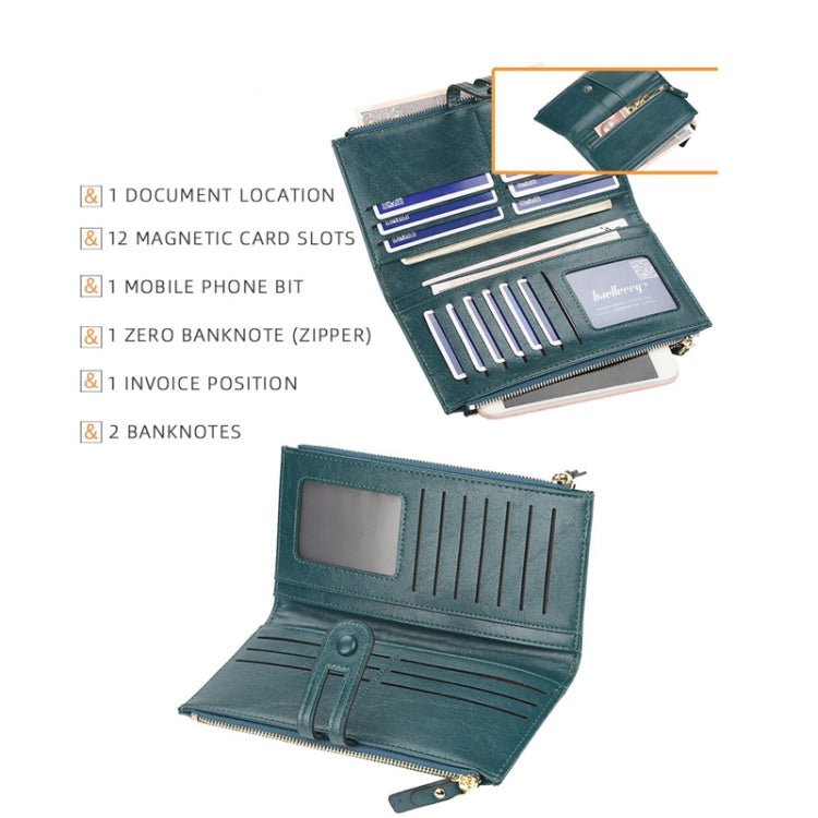 Baellerry Ladies Long Large Capacity Buckle Zip Clutch Multi-Card Wallet