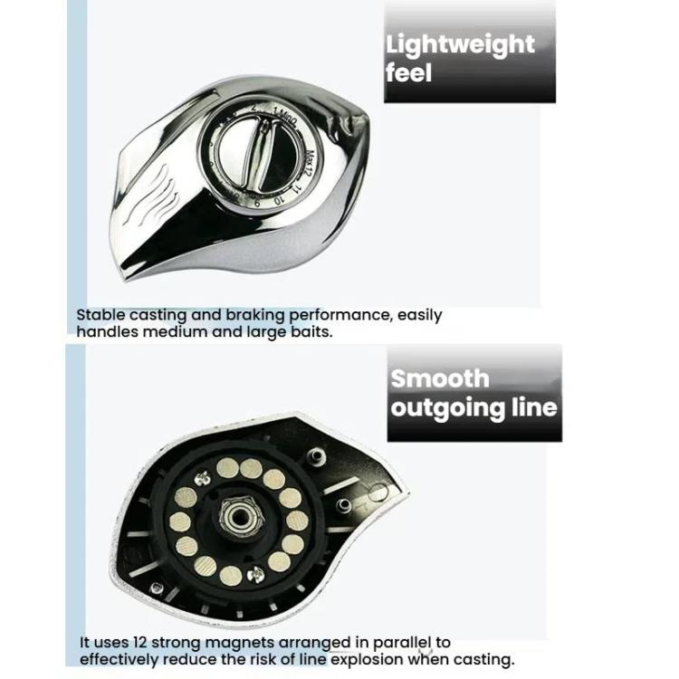 2. 12-Stage Magnetic Braking System: Equipped with 12 adjustable magnetic braking levels to ensure stable casting performance and reduce line tangling.