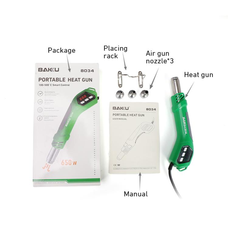BAKU BA-8034 650W Hot Air Blower 100-500 Degrees Celsius Heat Tool With 3 Nozzles