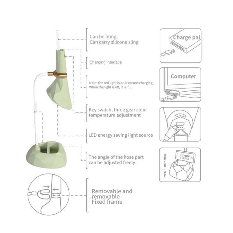 Base Removable Diamond Desk Lamp USB Charging 3-speed Color Temperature Night Light