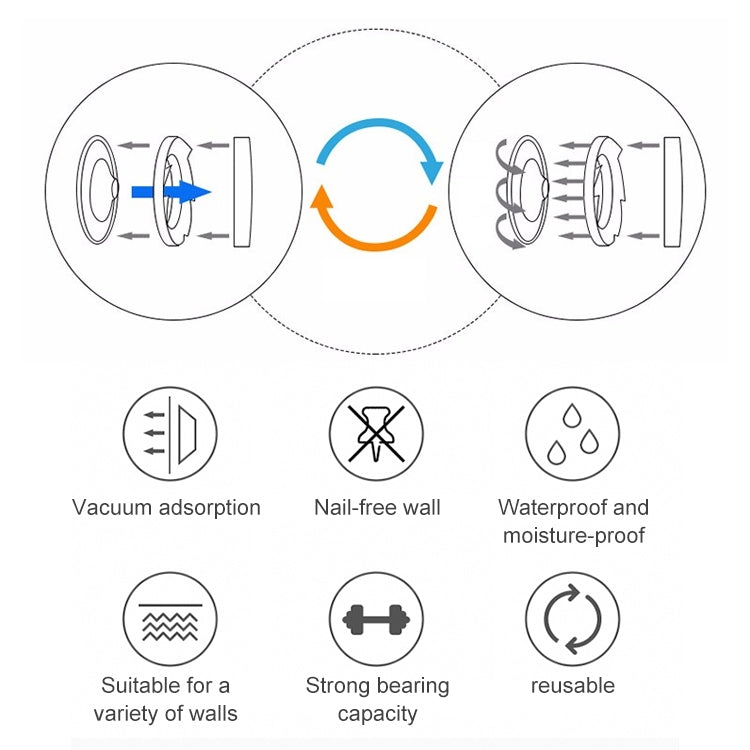 7. The suction cup is adsorbed on a smooth surface, such as glass, mirror and smooth ceramic tiles; if there are small cracks or small particles on the surface, it is recommended to use auxiliary stickers.
