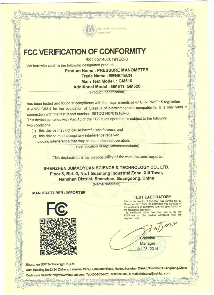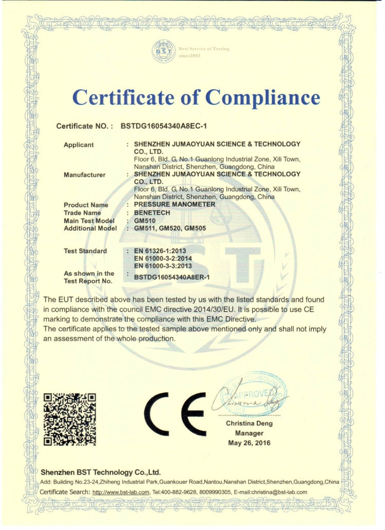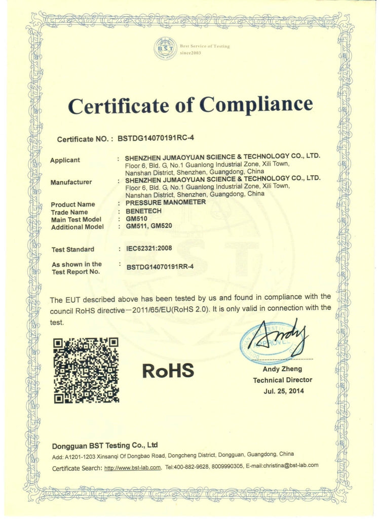 BENETECH GM510 LCD Display Pressure Manometer