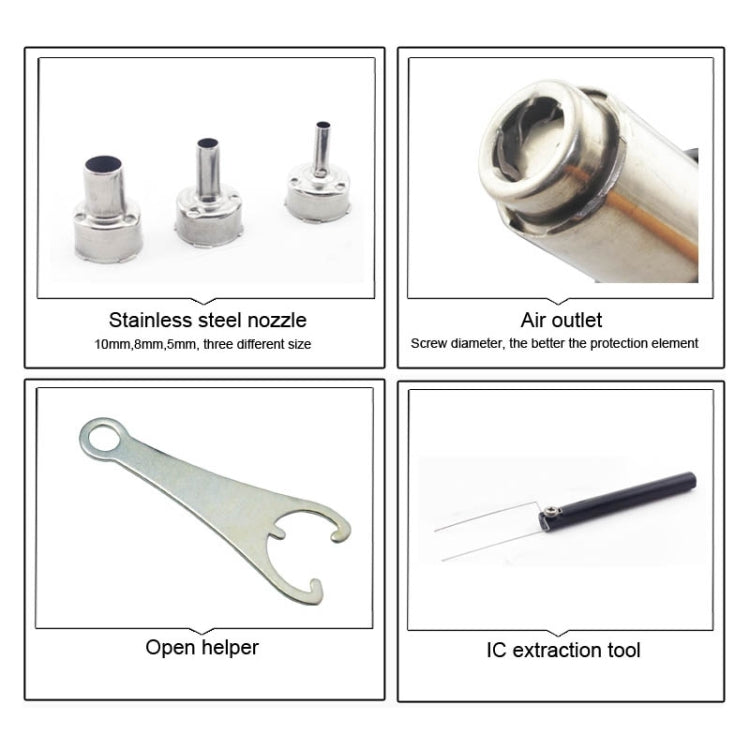 3. The hot air gun power, heating quickly, the wind gentle, air volume, ideal for free desoldering job