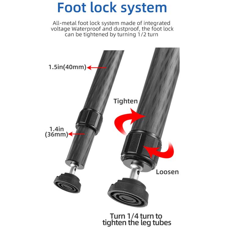 1. Material: Tripod tube is made of high-density high-strength carbon fiber, which greatly reduces the weight of the product.