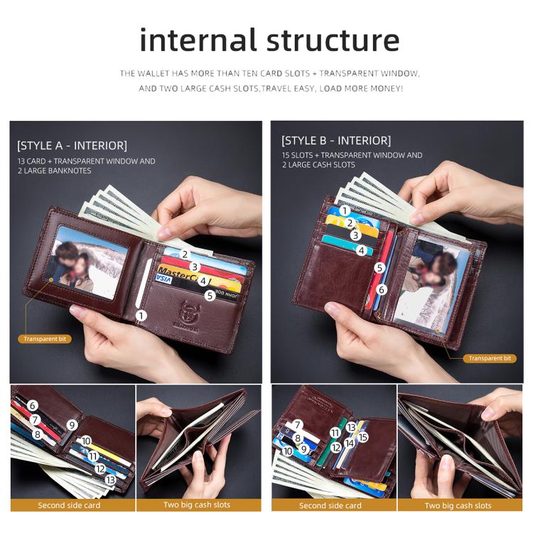 BULL CAPTAIN 0203 RFID Anti-theft Top-layer Cowhide Multiple Card Slots Wallet