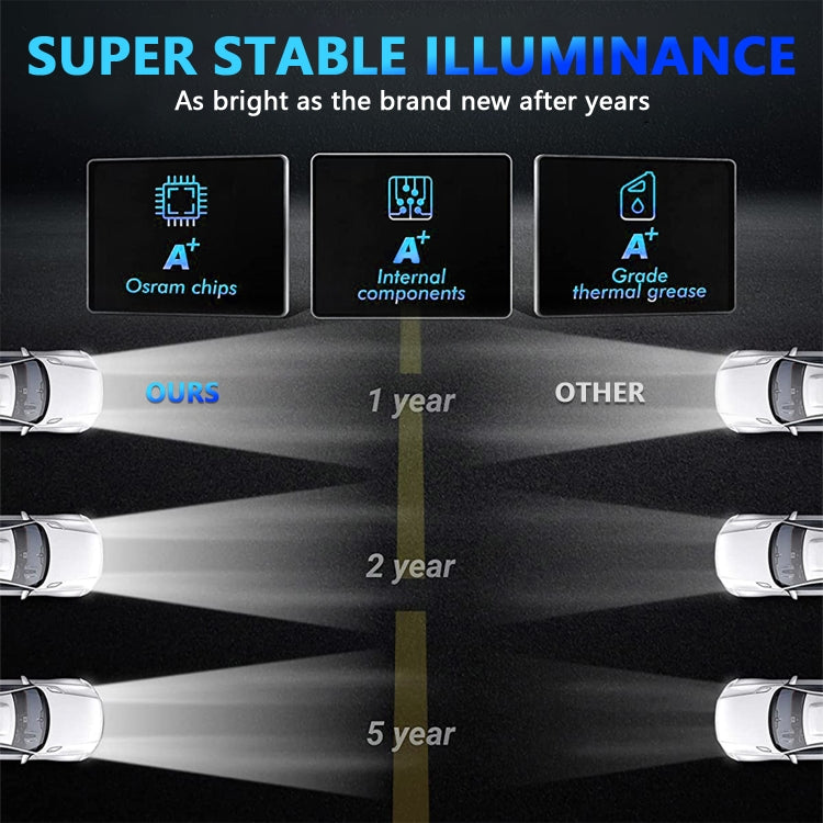 2. Osram LED chip: Using osram LED chip, ultra-bright far and near light, more than 50,000 hours of service life, and long working time.