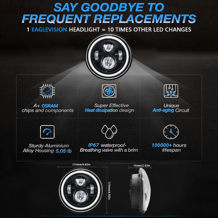 C0090 7 inch Car Colorful Round Angel Eye Headlight