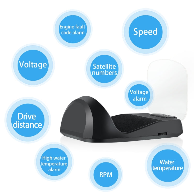 1. It displays driving data on the car windshield such as speed,RPM,water temperature,voltage,single mileage etc;avoiding drivers unsafely because of watching the instrument while driving.Drivers can read the driving information instantly, and always keep the best state on the way with HUD.