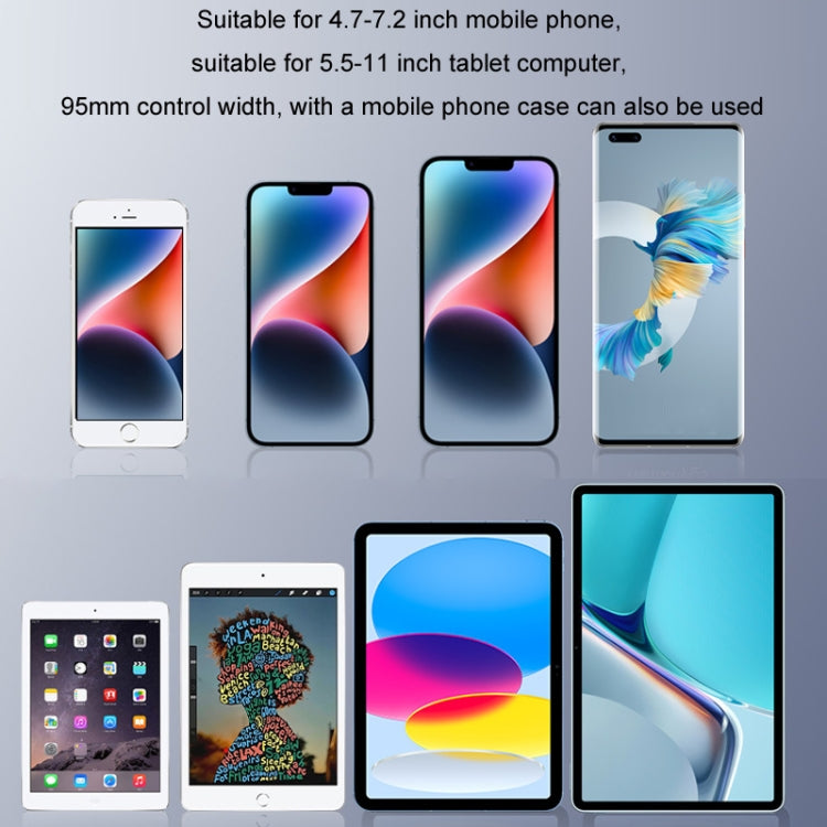 10. Suitable for 4.7-7.2-inch mobile phones, suitable for 5.5-11-inch tablets, 95mm adjustable width, can also be used with a mobile phone case