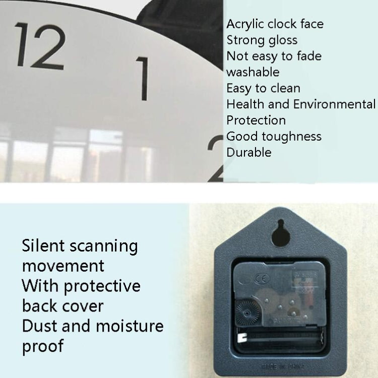 6. Features: Acrylic clock face, strong gloss, not easy to fade, washable, easy to clean, healthy and environmentally friendly, durable, silent scanning movement, with protective back cover, dust-proof and moisture-proof, aluminum pointer, accurate timekeeping, beautiful and practical , Not easy to break