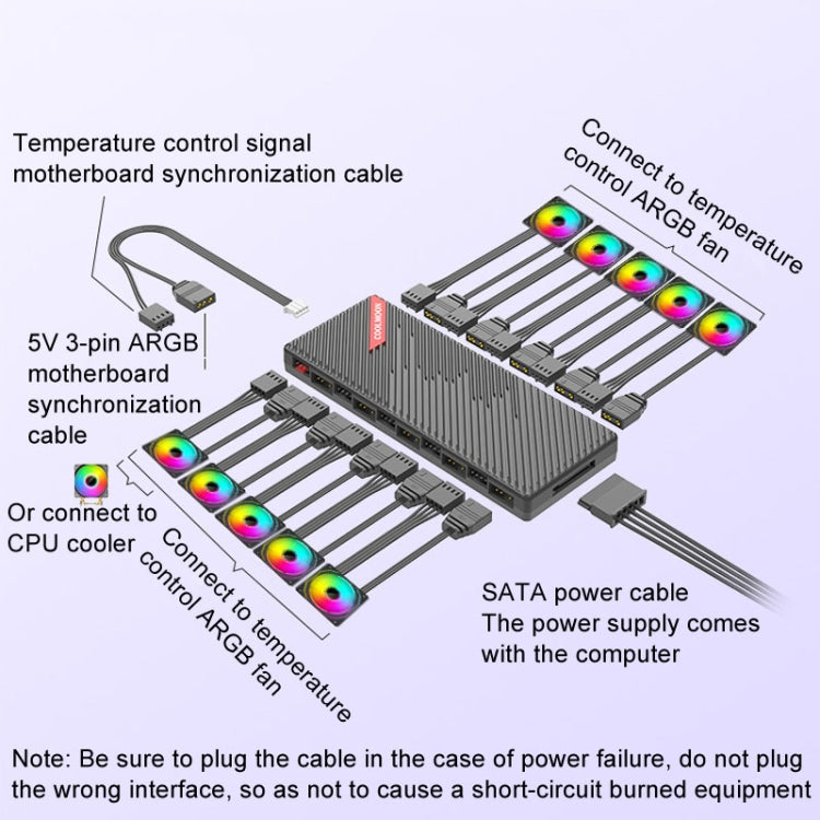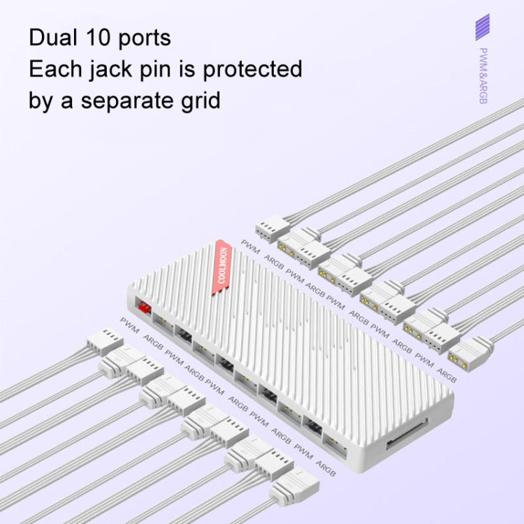 COOLMOON AM10 ARGB+PWM Dual 10 Ports Temperature Control Splitter Case Fan 5V 3Pin HUB