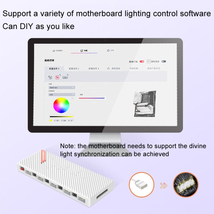 7. Support a variety of motherboard lighting control software, you can DIY (Note: need to support the motherboard light synchronization can be achieved)