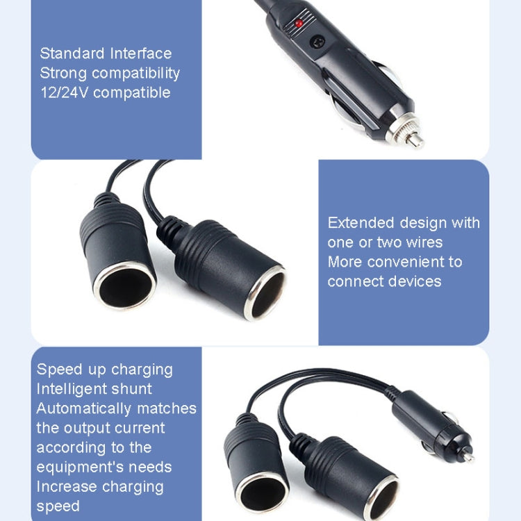 Copper Car Cigarette Lighter Extension 12/24V 10A General 1 Drag 2 Car Charging