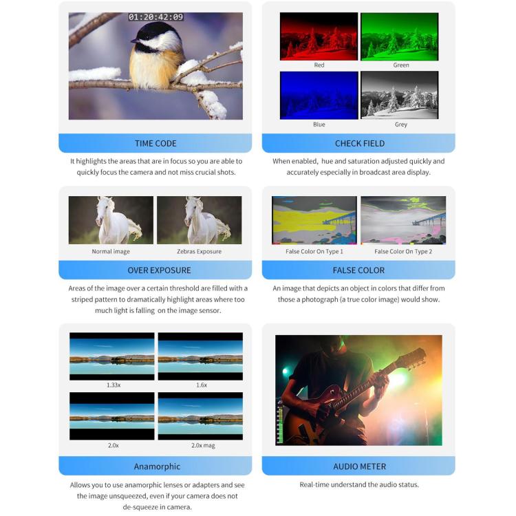 Focus Assist(Red, Green, Blue), you can adjust the peaking level after turning on(1~10)
