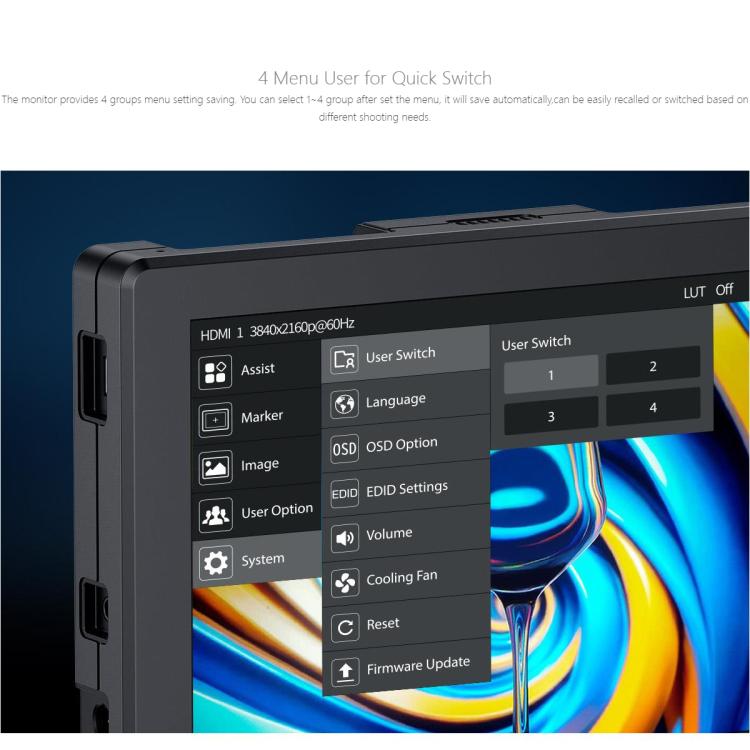 1. Support 3D LUT Log to Rec.709, user 3D LUT Upload (up to 32)