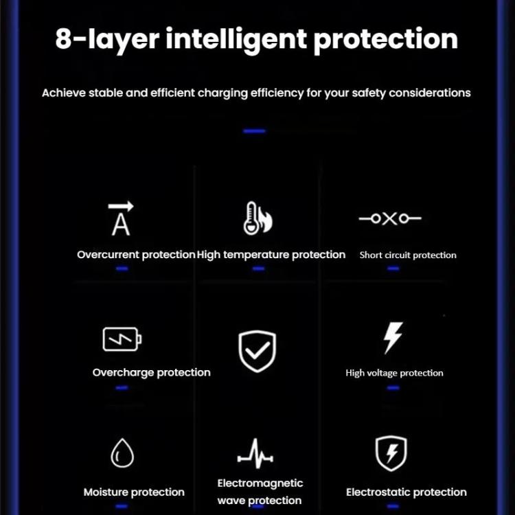 3. Safety protection system: Adopts intelligent IC chipset, 8-fold safety protection (overvoltage/overcurrent/short circuit protection), full automatic power-off technology, protects the battery health of the device