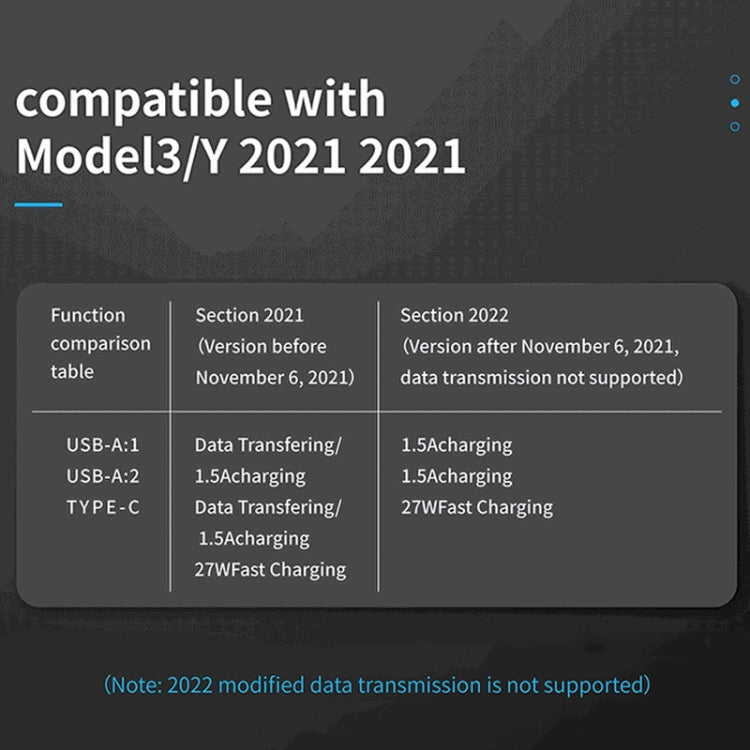 For Tesla Model 3/Y Car T09 Center Console 27W 3-in-1 USB Hub Docking Station