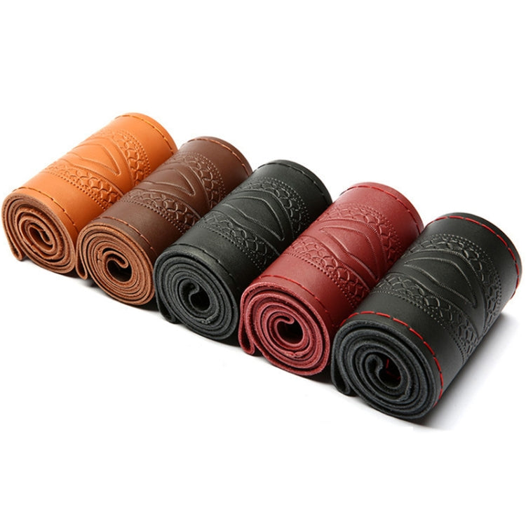 Four-Season Embossed Hand-Sewn Cowhide Steering Wheel Cover